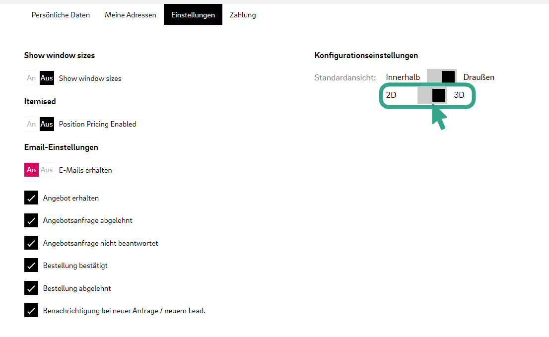 Der 2D-Modus verkürzt die Ladezeiten signifikant. Wir empfehlen, die Fenster in diesem Modus zu konfigurieren und vor der Visualisierung des Fensters für den Endverbraucher in den 3D-Modus zurückzukehren.