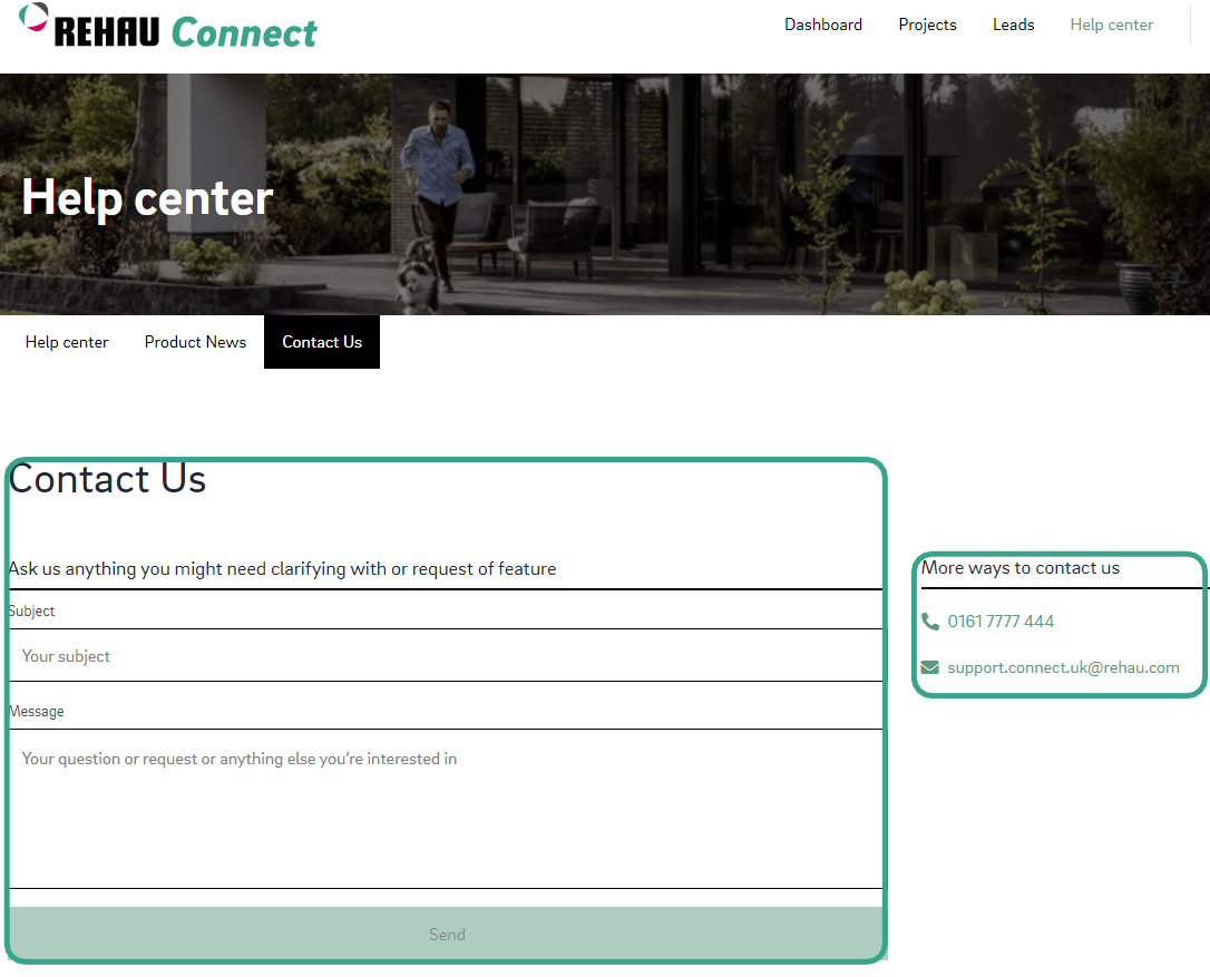 Schreiben Sie uns eine E-Mail an support.connect.uk@rehau.com