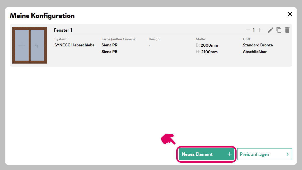 Wenn Sie ein neues Element zu Ihrem Projekt hinzufügen möchten, klicken Sie einfach auf die Schaltfläche "Neues Element" am Ende der Projektübersichtsseite.