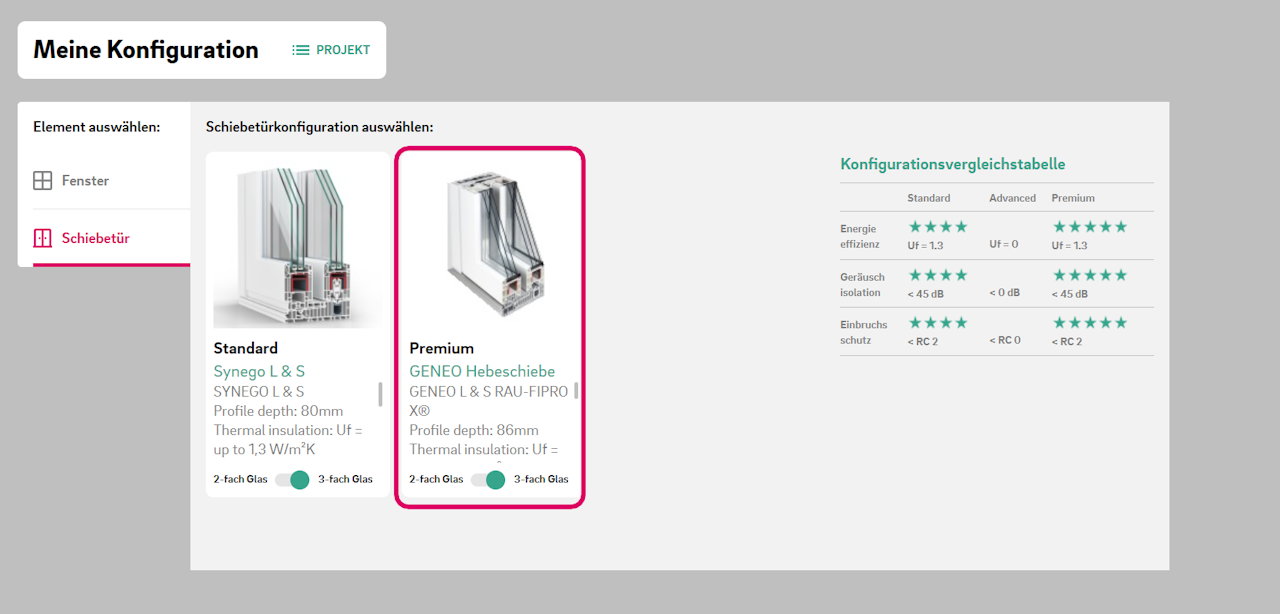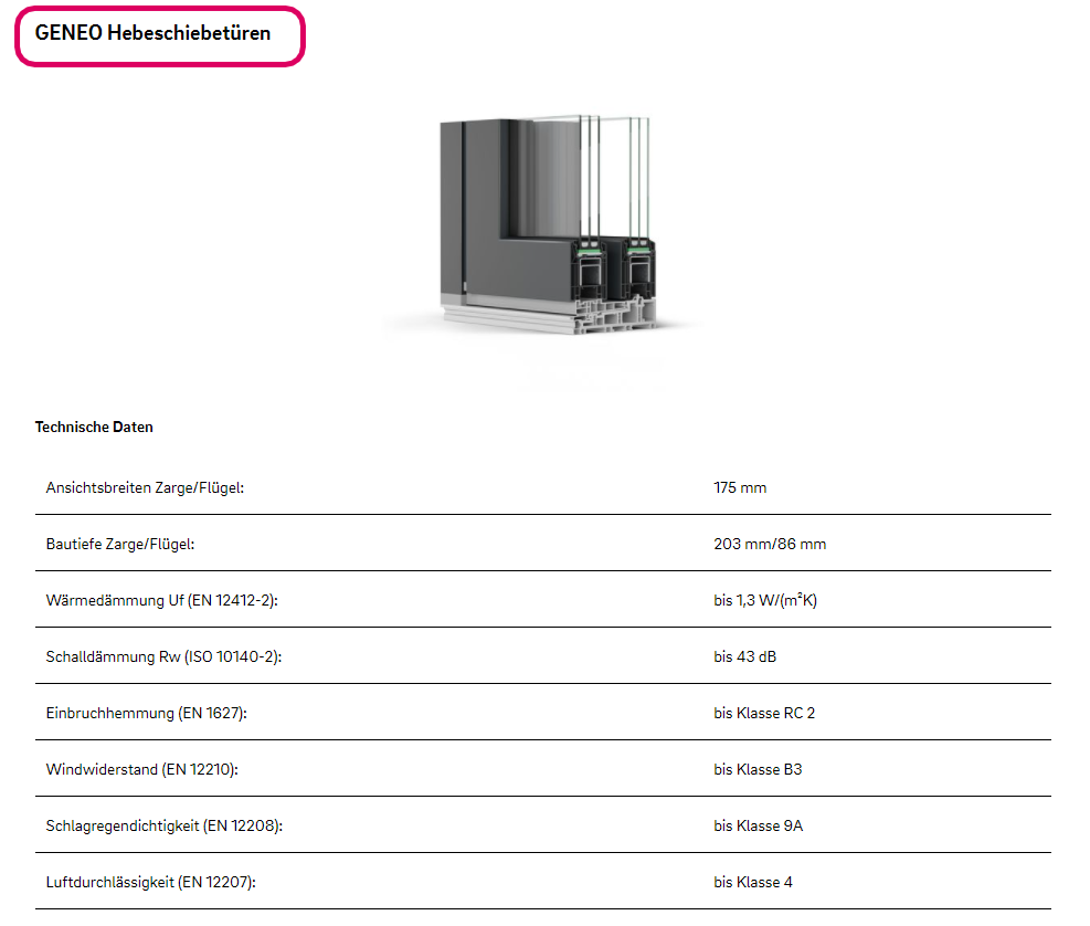 GENEO lift and slide doors: The large design elements made of the fibre-reinforced high-tech material RAU-FIPRO add a modern touch to your living space.